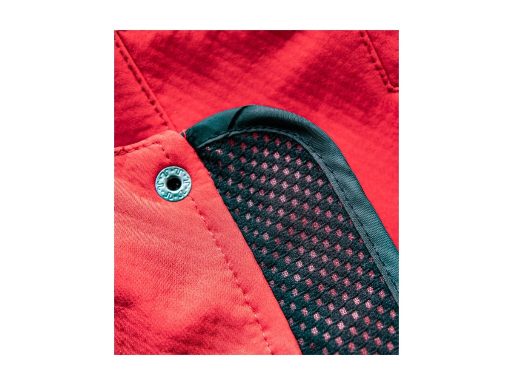 3vrstvý softshell s membránou efektní textura softshellu úprava Nanotex® zabraňující průniku vody lehce vypasovaný střih celopropínací spirálový zip s klopou kapuce na stažení šňůrkou kapuce a lemy rukávů nastavitelné suchým zipem kapsy s reverzním spirálovým zipem náprsní kapsa tvarovaný a mírně prodloužený zadní díl kontrastní prvky Údržbové informace pro softshellový materiálSoftshell: 96 % polyester, 4 % elastan (složení se může lišit - 100 % polyester), NANOtex® povrchová úprava TPU membrána perforovaný micro fleece: 100 % polyester voděodolnost 5 000 mm, prodyšnost 600 g/m²/24 hod