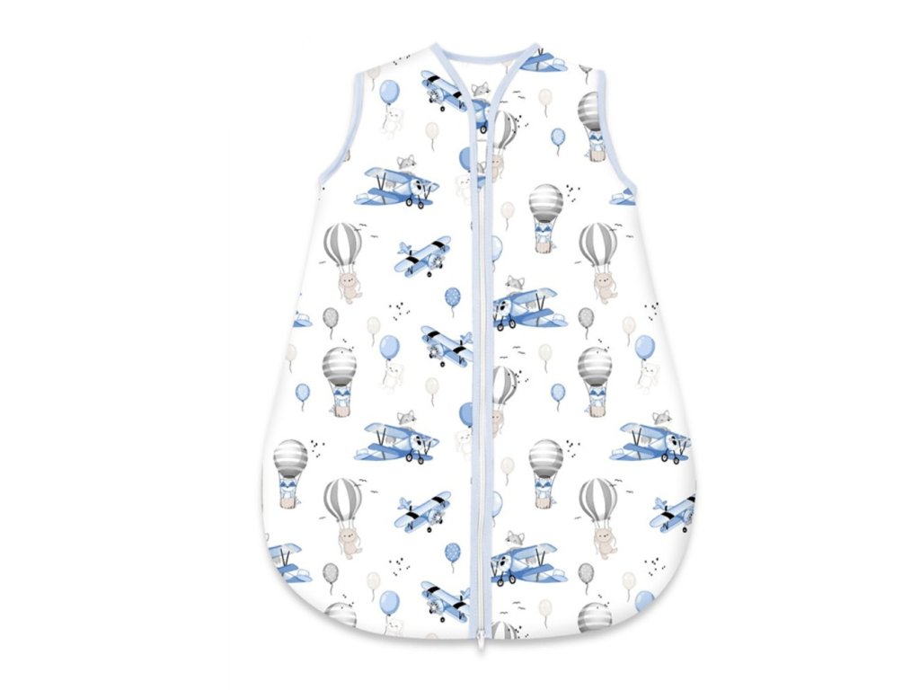 Spací vak, bavlna, celoroční na zip 74 cm, Letadla a balón - modrá