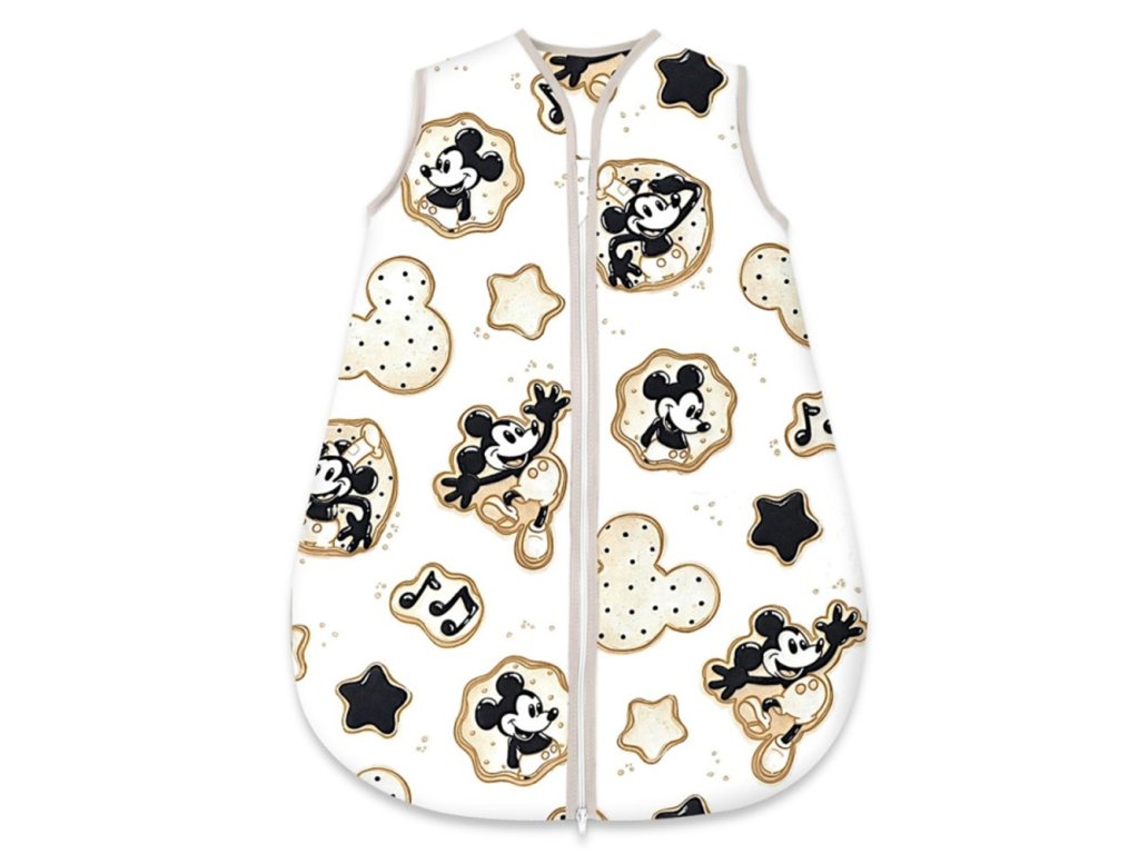 Spací vak, bavlna, celoroční na zip 74 cm, Myška Retro - bílá s potiskem