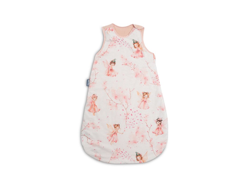 Spací vak, mušelín, bavlna, vel. M, 50x80cm - Víla Ema, růžová, bílá