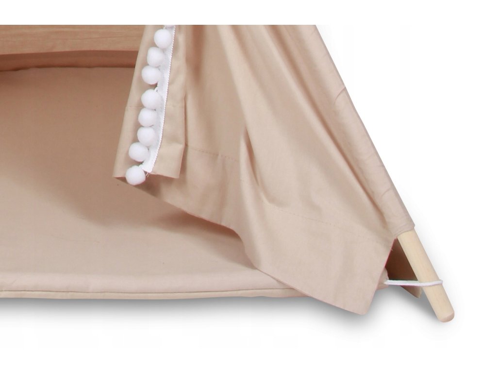 Stan lze použít jak uvnitř domu, tak i na zahradu. Závěs na okně a vstup lze regulovat a lze tak regulovat propustnost světla dovnitř stanu. Balení obsahuje: 1. Stan na dřevěném rámu. 2. Oboustranná bavlněná podložka (tloušťka cca 4 cm). 3. 5 roztomilých plyšových polštářků - 3 měsíčky, obláček, čtverec zdobený bambulkami. Výplň tvoří měkké antialergické silikonové kuličky. 4. Stahovací šňůrka pro snadnou montáž. Charakteristika: - velká kapsa uvnitř stanu - okno s roletkou a ozdobné šňůrky na zavázání - konstrukce má 4 kulaté leštěné tyčinky, aby nedošlo k poškrábání podlahy. Délka 170 cm, průměr 22 mm. Rozměry: šířka 115 x 115 cm , výška 160 cm. tolerance +/- 3 cm Materiál: BavlnaGramáž látky minky 400 g / m2). Výplň je měkká, antialergická silikonová kulička. Údržba:lze prát v pračce na 40o, max - 800 ot./min bavlněnou látku žehlit při teplotě do 110o používejte jemné čisticí prostředky, nepoužívejte bělidlo, nesušte v sušičce. Materiály, ze kterých je zboží ušité, mají certifikáty a atesty produktů 1. jakosti (produkty pro děti) OKO-TEX 100. Videonávod: Jak na motáž dětského domečku týpí. ZDEDoplňkové parametry