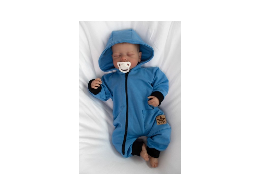 Teplákový overal s kapsičkou a kapucí BOY, Baby Nellys, modrý