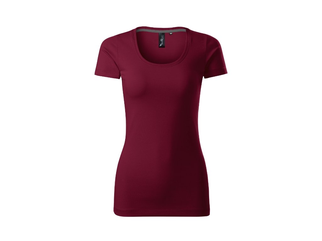 strečový materiál udržující stálost tvaru přiléhavý střih s bočními švy hlubší kulatý výstřih úzký lem průkrčníku z žebrového úpletu 1:1 s 5 % elastanu vnitřní část průkrčníku začištěna kontrastní páskou zpevnění ramenních švů páskou krátké přiléhavé rukávy dekorativní prošitíSingle Jersey, 95 % bavlna, 5 % elastan