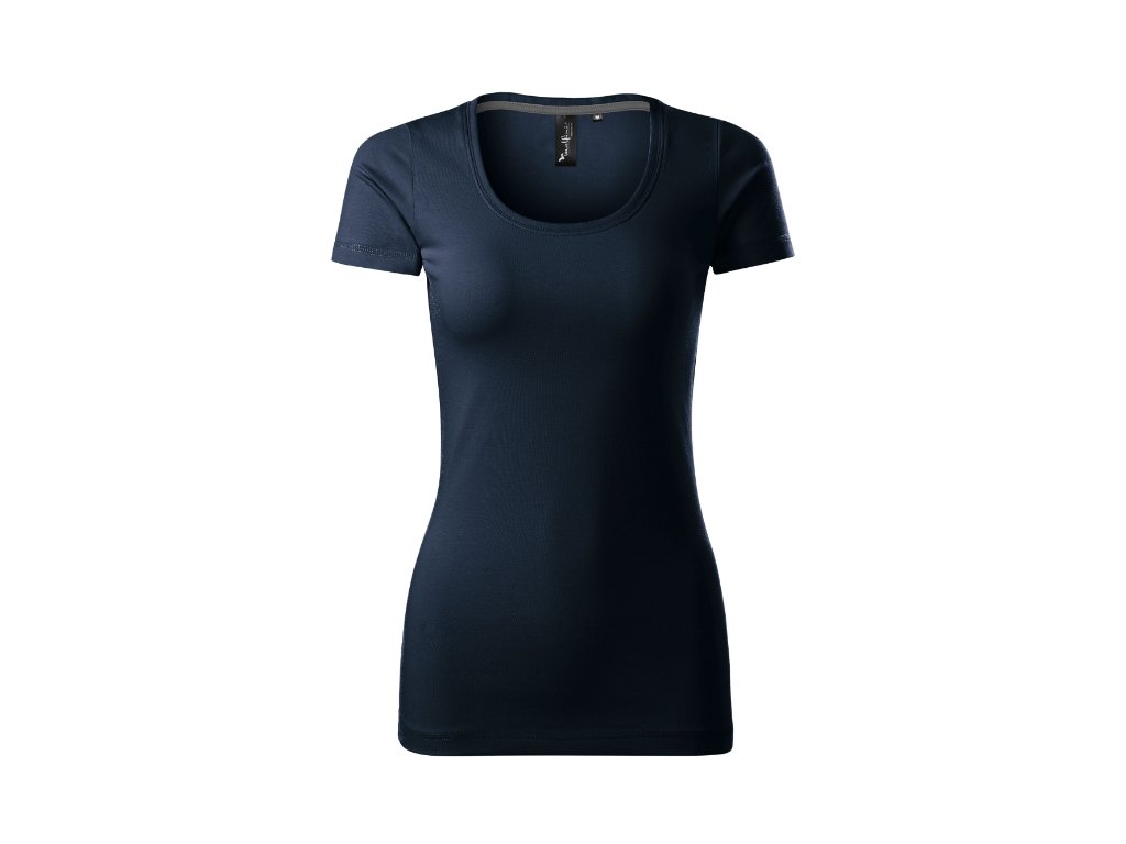 strečový materiál udržující stálost tvaru přiléhavý střih s bočními švy hlubší kulatý výstřih úzký lem průkrčníku z žebrového úpletu 1:1 s 5 % elastanu vnitřní část průkrčníku začištěna kontrastní páskou zpevnění ramenních švů páskou krátké přiléhavé rukávy dekorativní prošitíSingle Jersey, 95 % bavlna, 5 % elastan