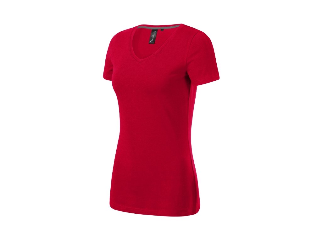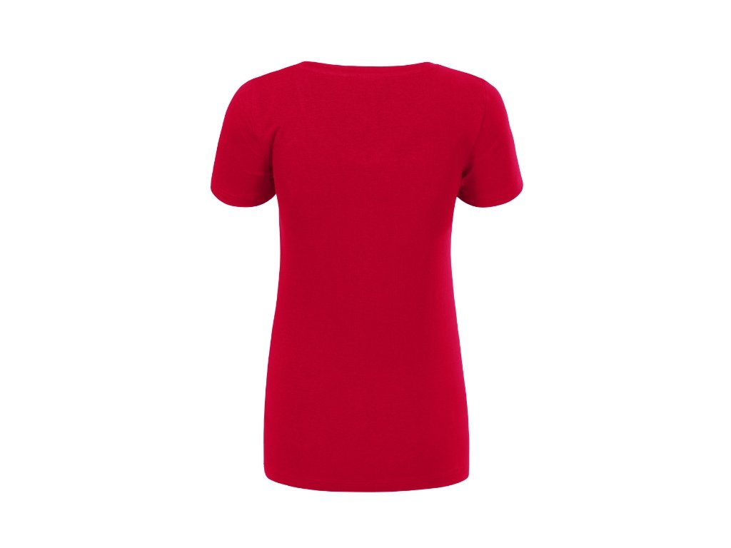 strečový materiál udržující stálost tvaru přiléhavý střih s bočními švy hlubší výstřih ve tvaru V úzký lem průkrčníku z žebrového úpletu 1:1 s 5 % elastanu vnitřní část průkrčníku začištěna kontrastní páskou zpevnění ramenních švů páskou krátké přiléhavé rukávySingle Jersey, 95 % bavlna, 5 % elastan