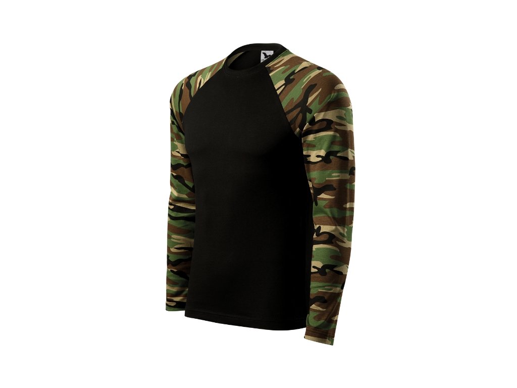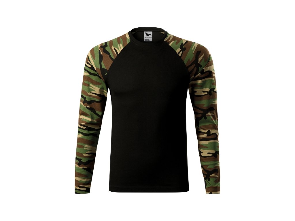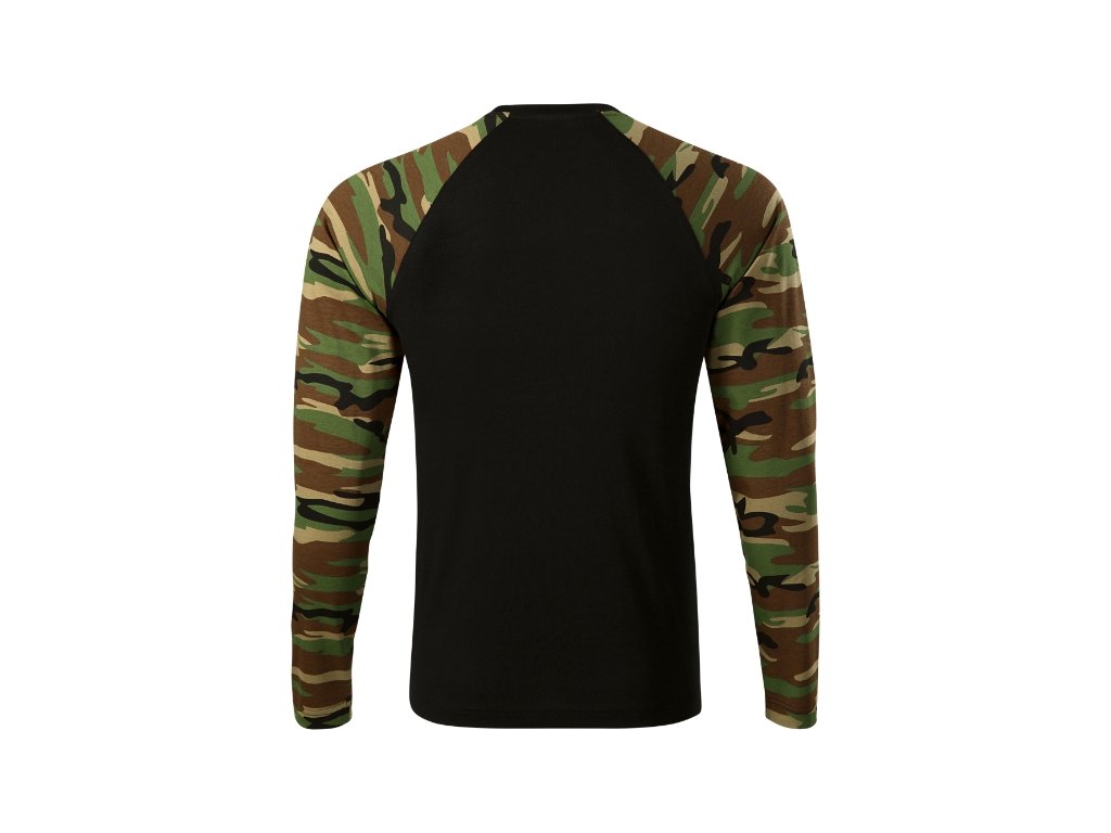střih s bočními švy úzký lem průkrčníku z žebrového úpletu 1:1 s 5 % elastanu vnitřní část průkrčníku začištěna páskou v barvě 01 dlouhé raglánové rukávy v barvě camouflageSingle Jersey, 100 % bavlna