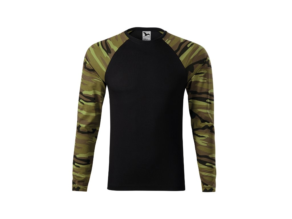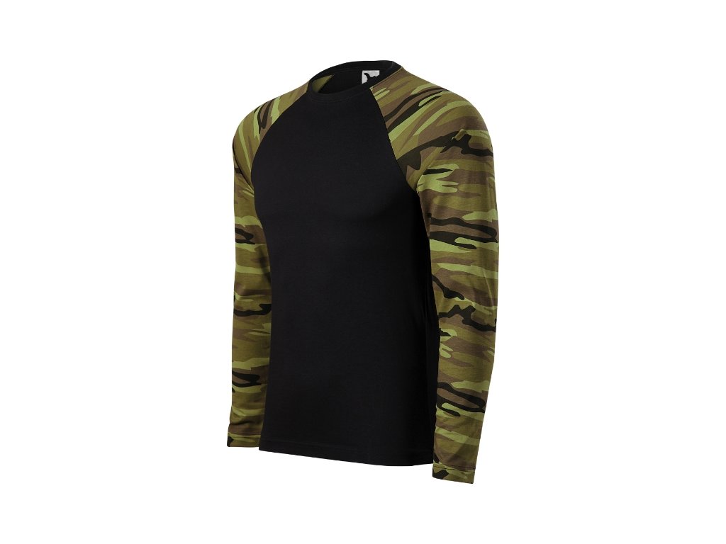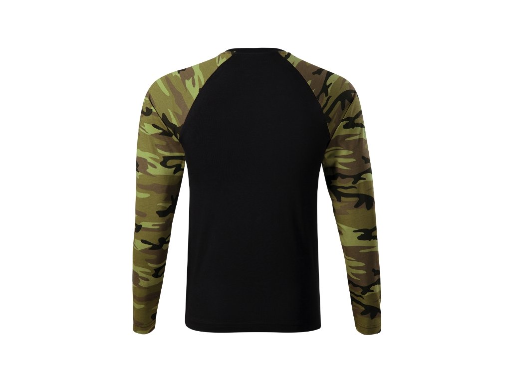 střih s bočními švy úzký lem průkrčníku z žebrového úpletu 1:1 s 5 % elastanu vnitřní část průkrčníku začištěna páskou v barvě 01 dlouhé raglánové rukávy v barvě camouflageSingle Jersey, 100 % bavlna