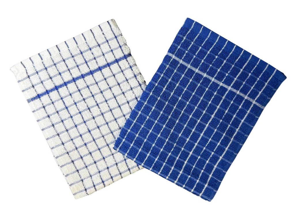 Praktické froté utěrky Olga modrobílá v balení po dvou kusech jsou ideální volbou pro každou kuchyni. Jedna utěrka je bílá s modrým kárem, druhá modrá s bílým kárem – elegantní kontrastní design, který dodá prostoru svěží vzhled. Vyrobeno v České republice firmou DADKA VRACOV.