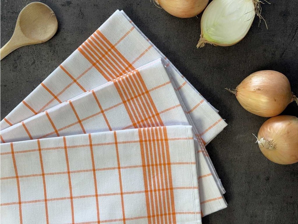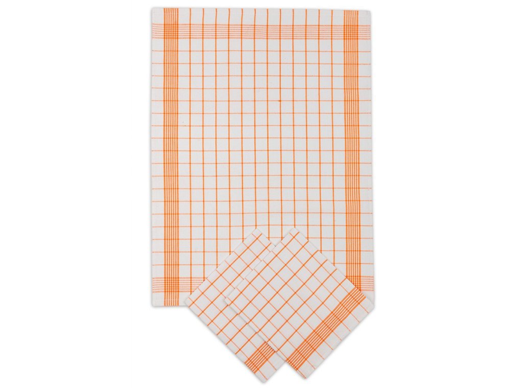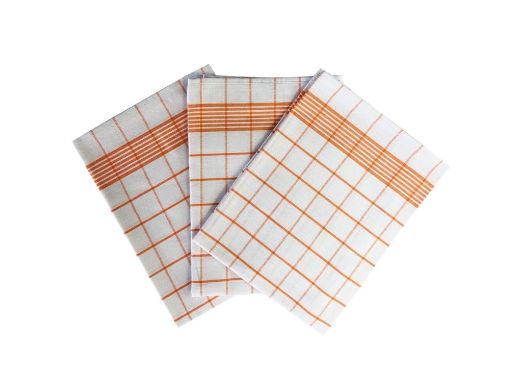 Sada tří bavlněných utěrek s kostkami - kombinace barev bílá a oranžová.Doporučené praní na 60°C.