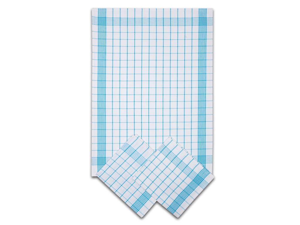 Sada tří bavlněných utěrek s kostkami - kombinace barev bílá a modrá.Doporučené praní na 60°C.