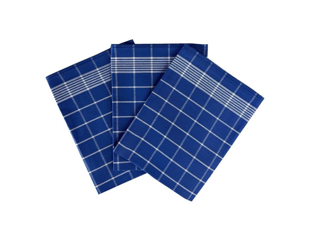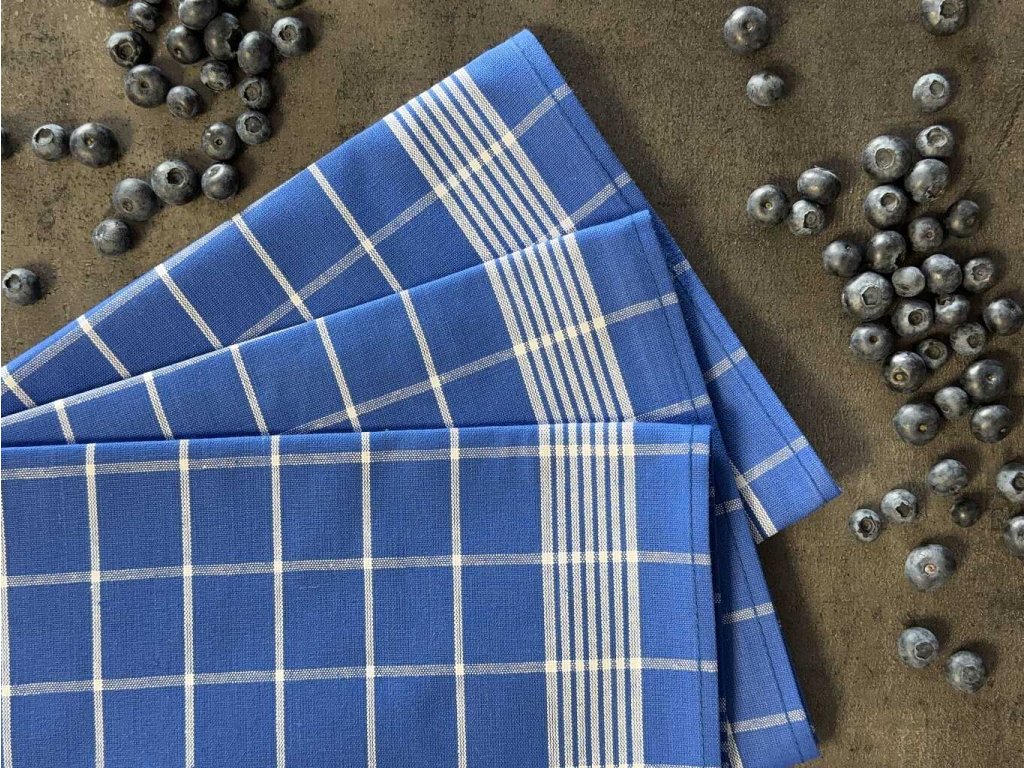 Sada tří bavlněných utěrek s kostkami - kombinace barev modrá a bílá.Doporučené praní na 60°C.