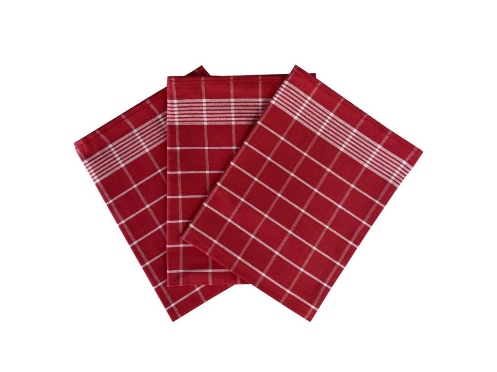 Sada tří bavlněných utěrek s kostkami - kombinace barev vínová a bílá.Doporučené praní na 60°C.