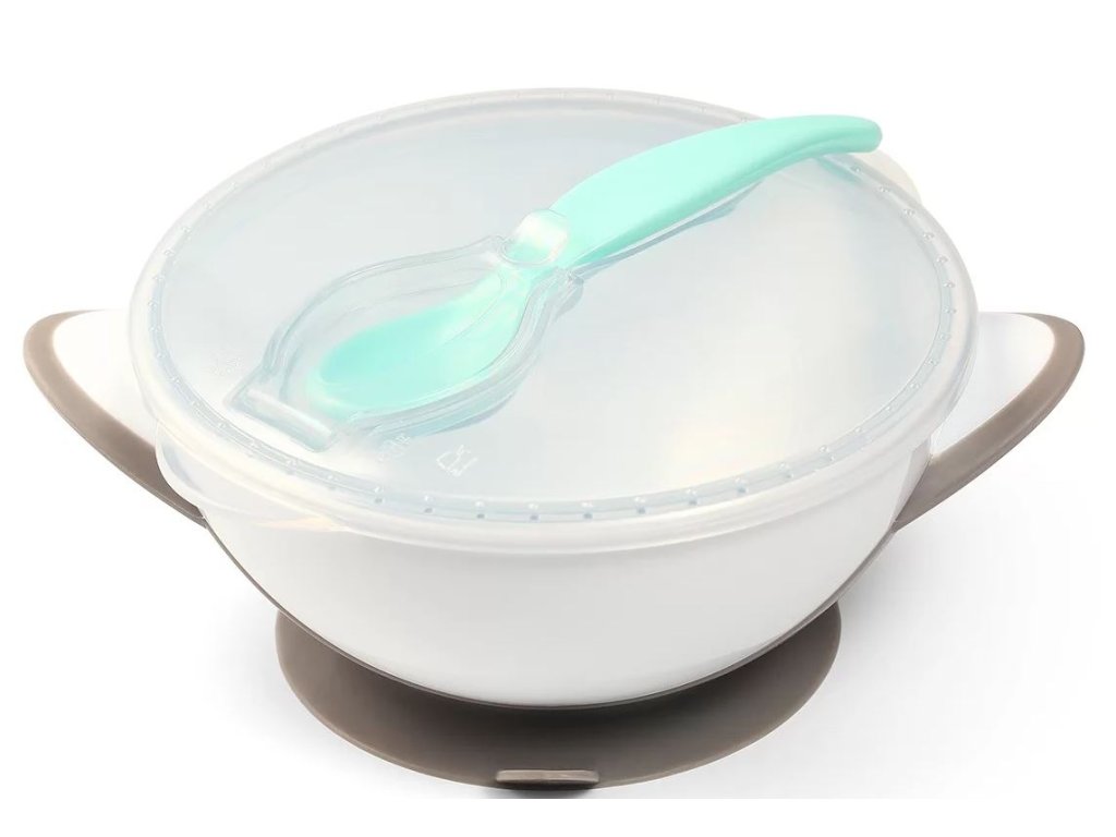 Uzaviratelná miska s přísavkou a lžičkou - mátová, šedá, BabyOno