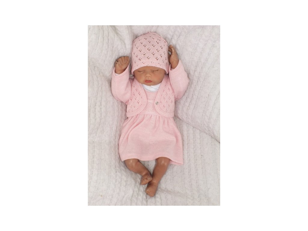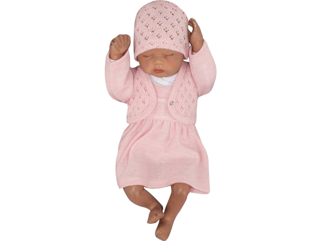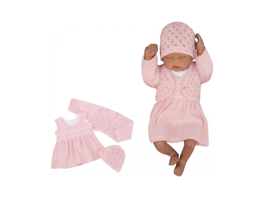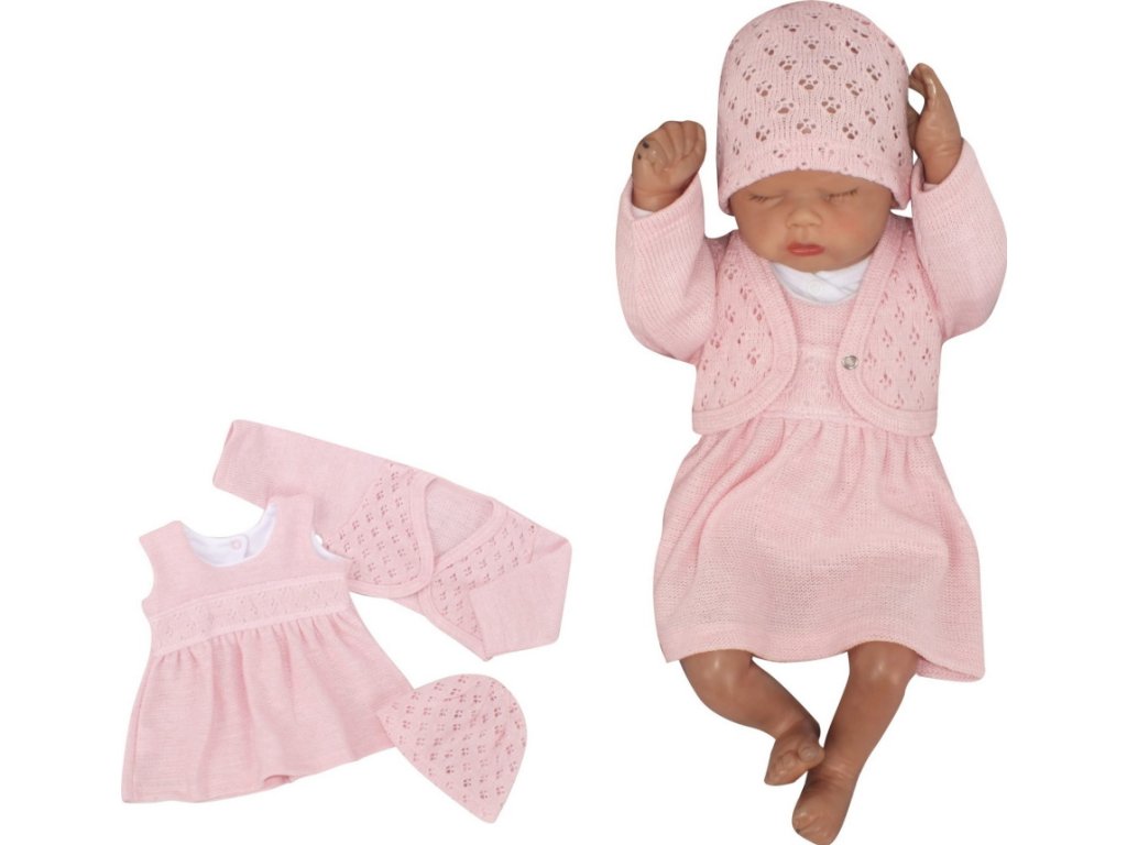 Z&Z 3-dílná pletená sada šatičky, bolérko a čepička - růžová