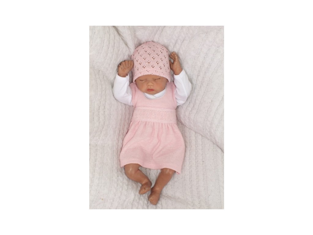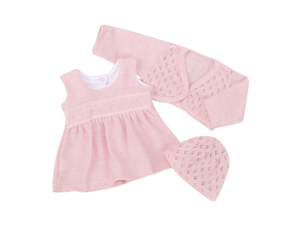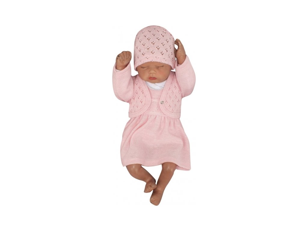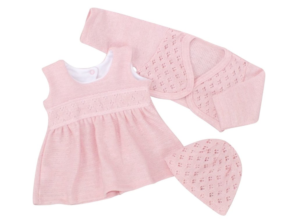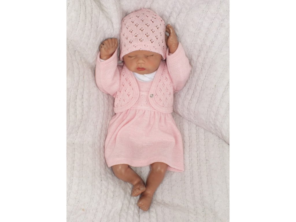 Z&Z 3-dílná pletená sada šatičky, bolérko a čepička - růžová