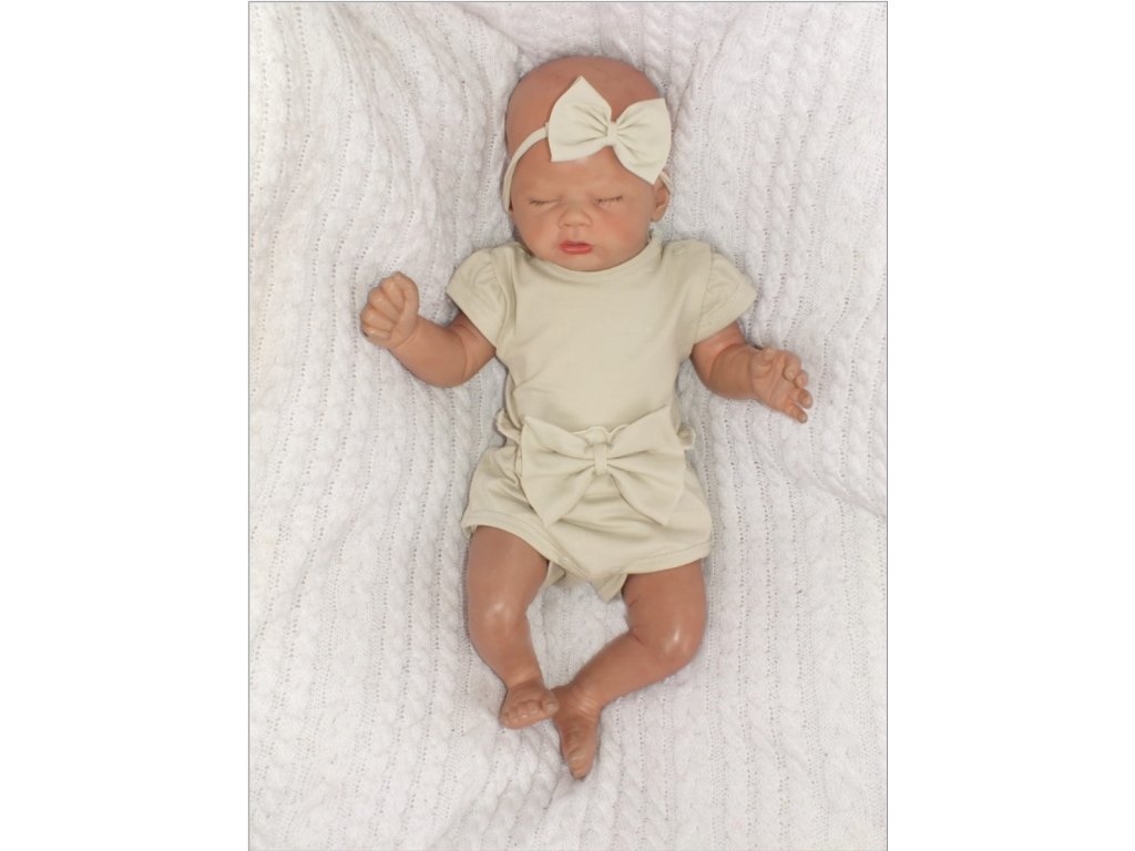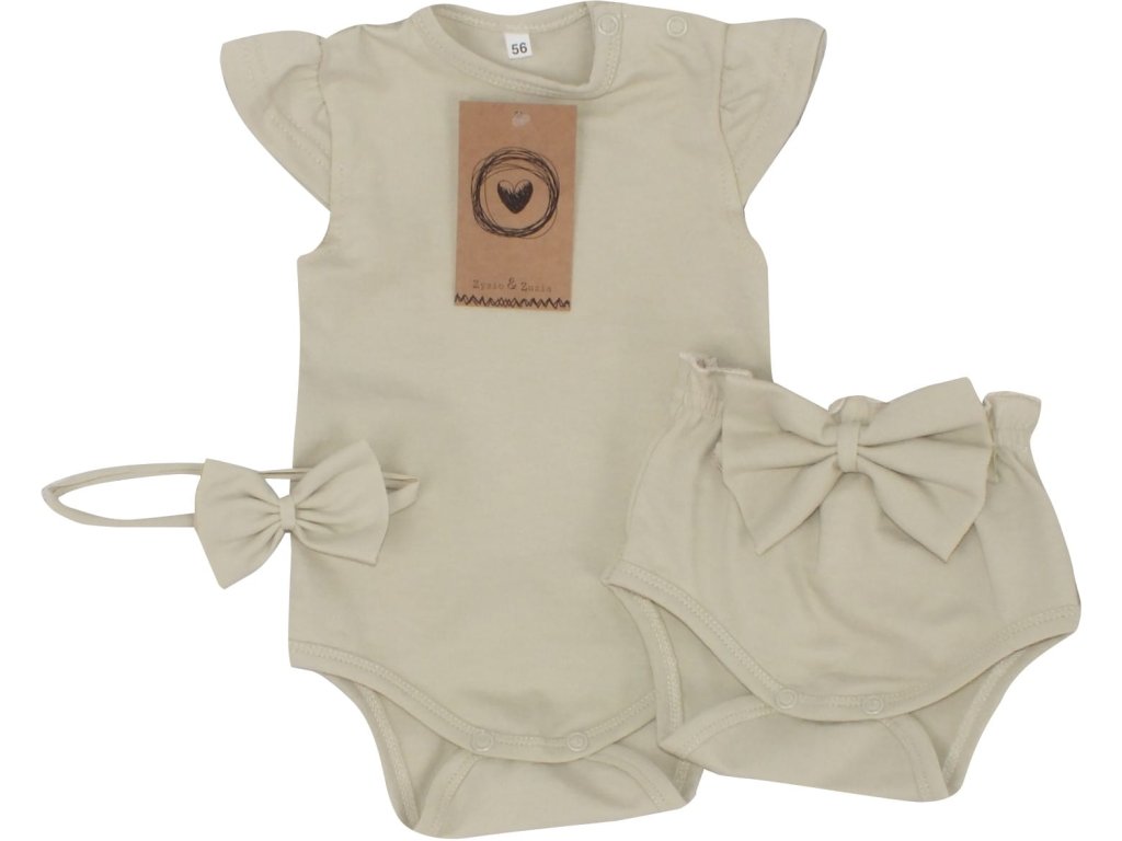 Z&Z 3-dílná sada body, kraťásky, čelenka s mašlí - olivová