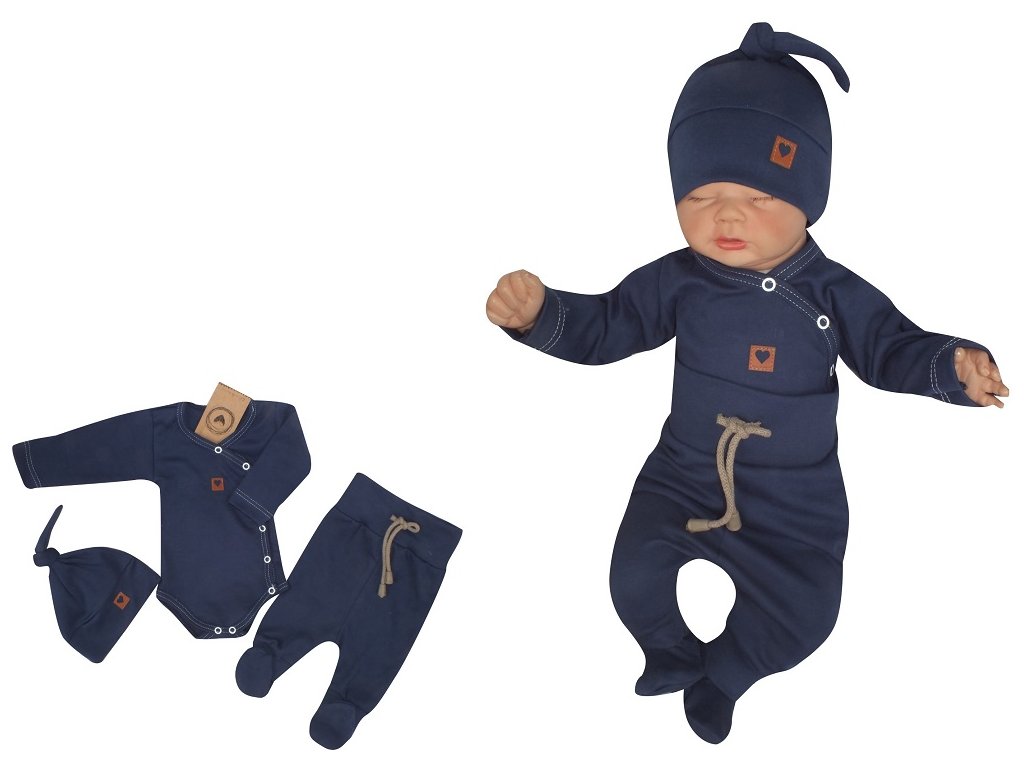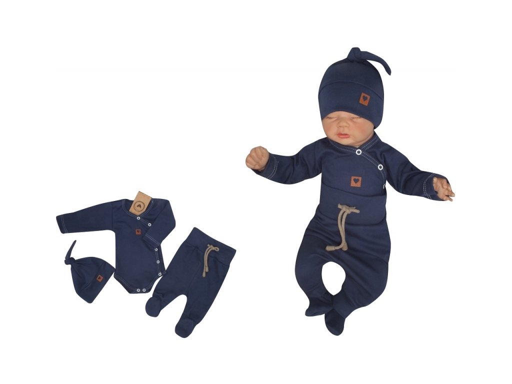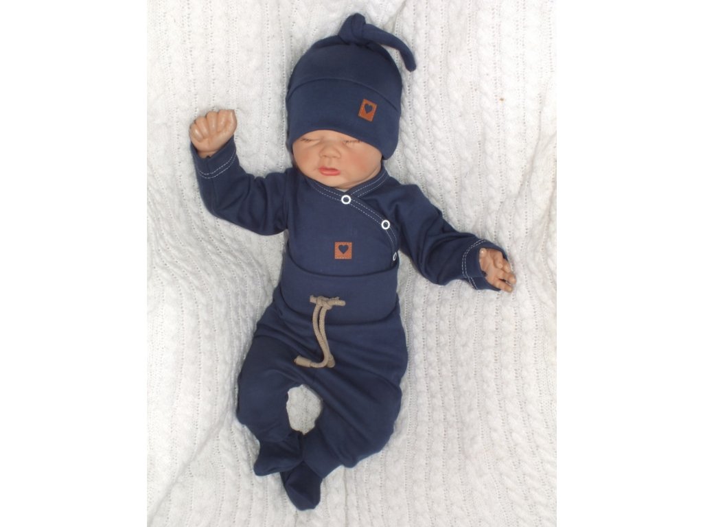 Z&Z 3-dílná soupravička body, polodupačky s provázkem a čepička - granátová