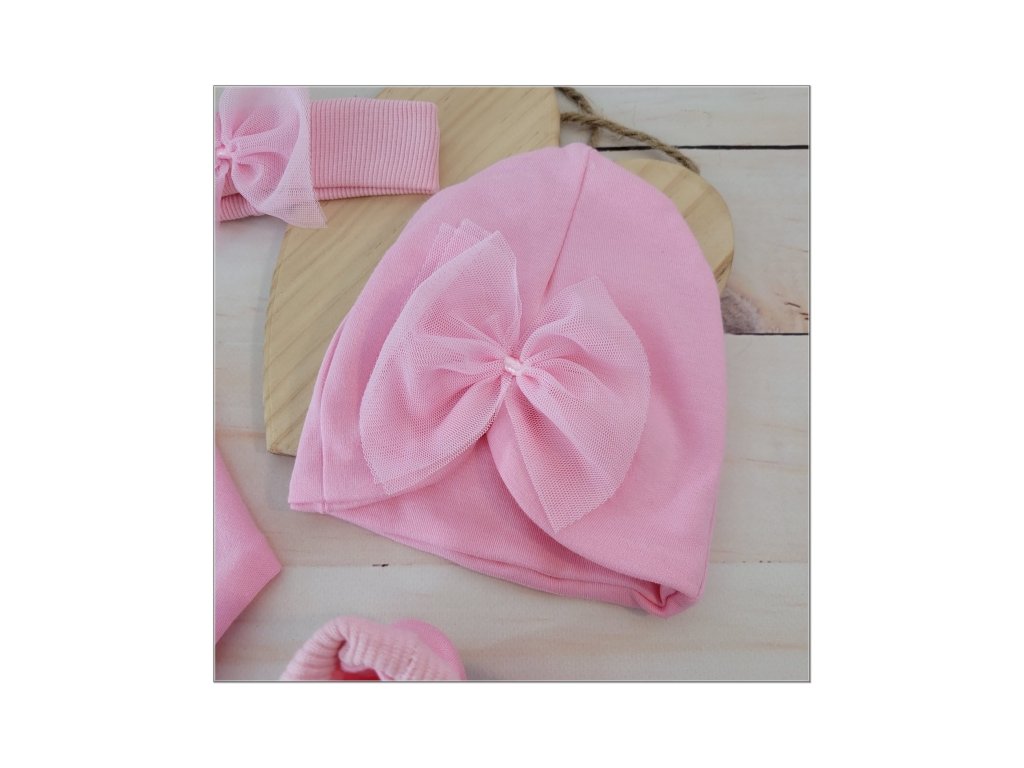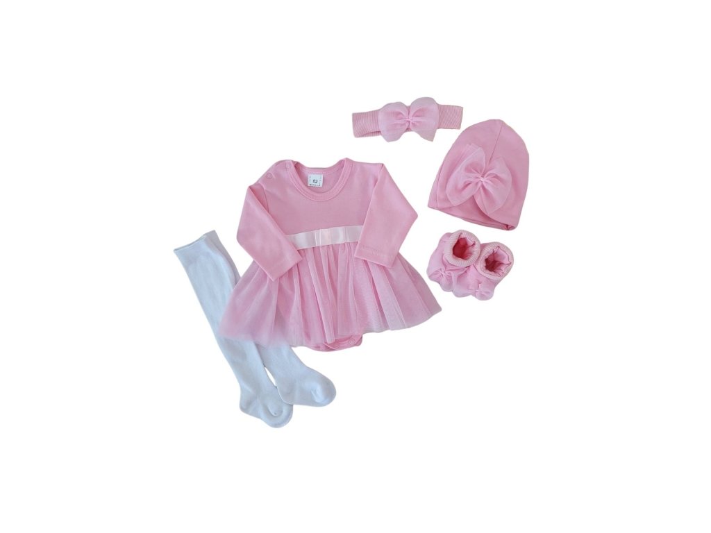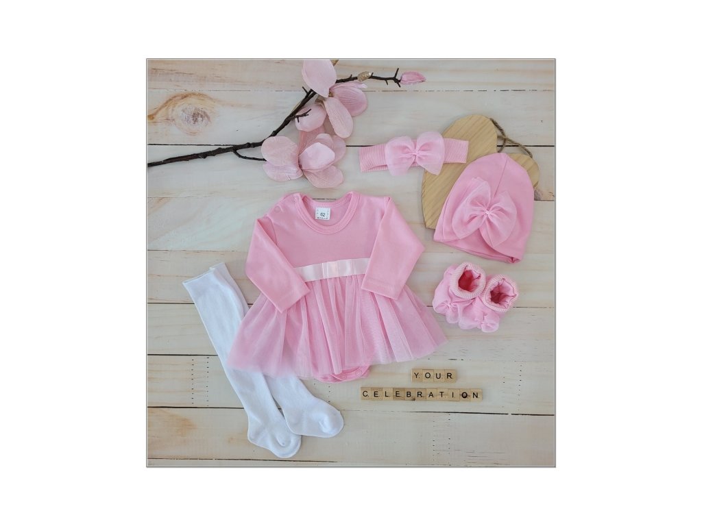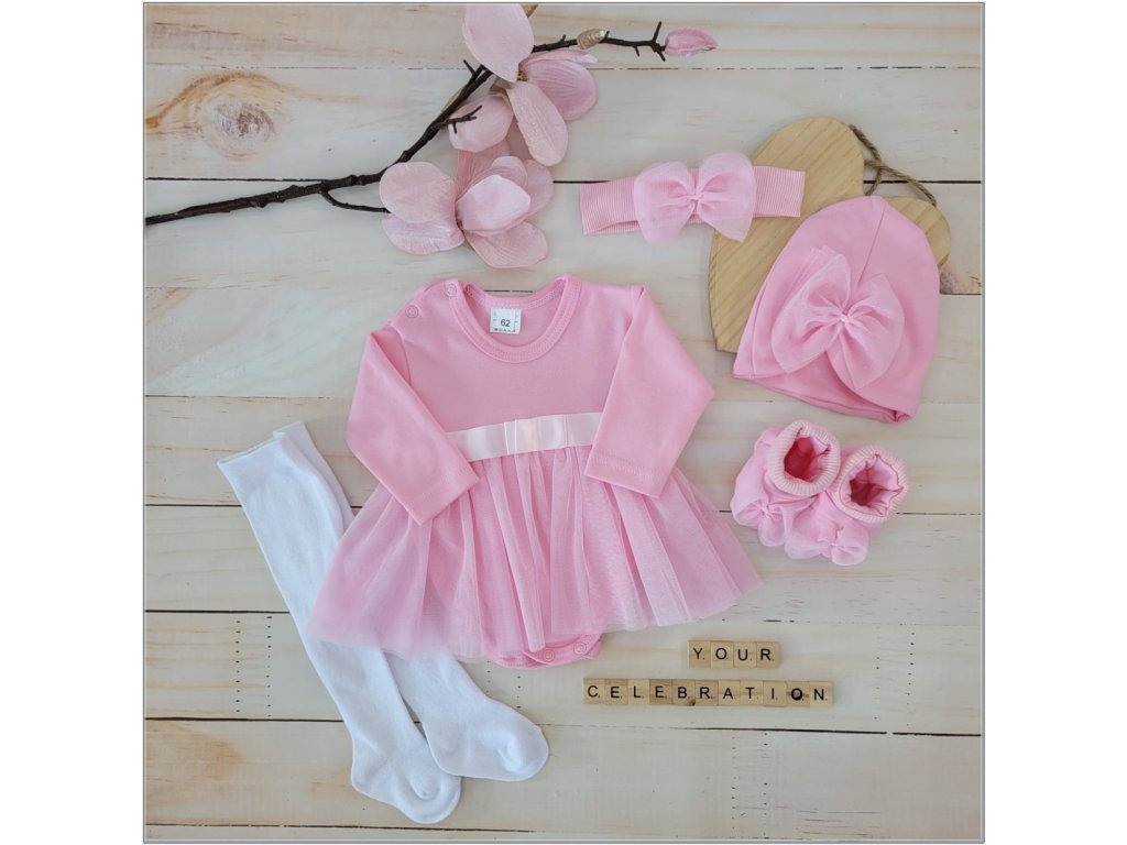 Z&Z 5-dílná soupravička sukničkobody, punčochy, čepička, čelenka, botičky - růžová