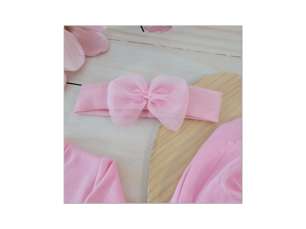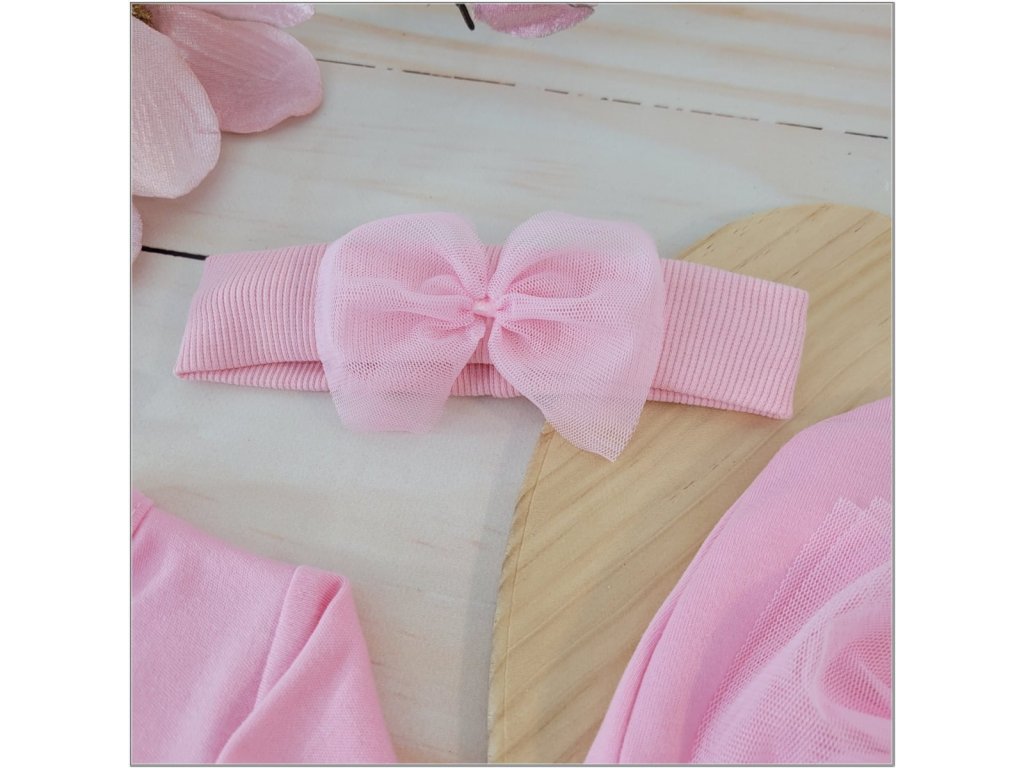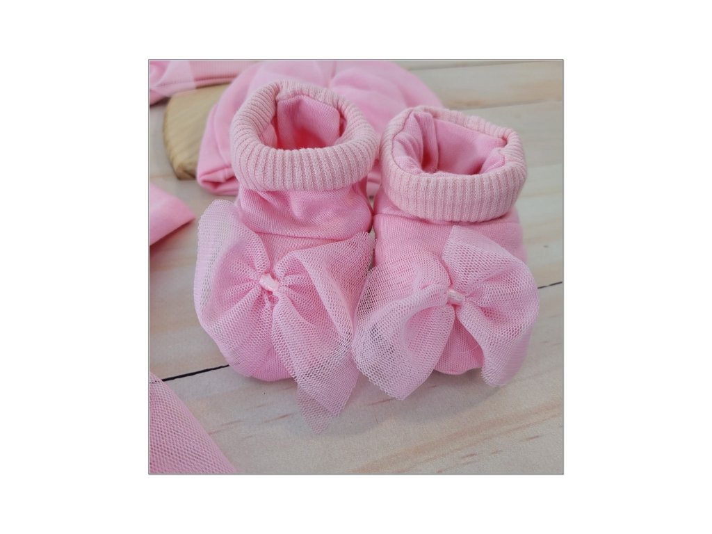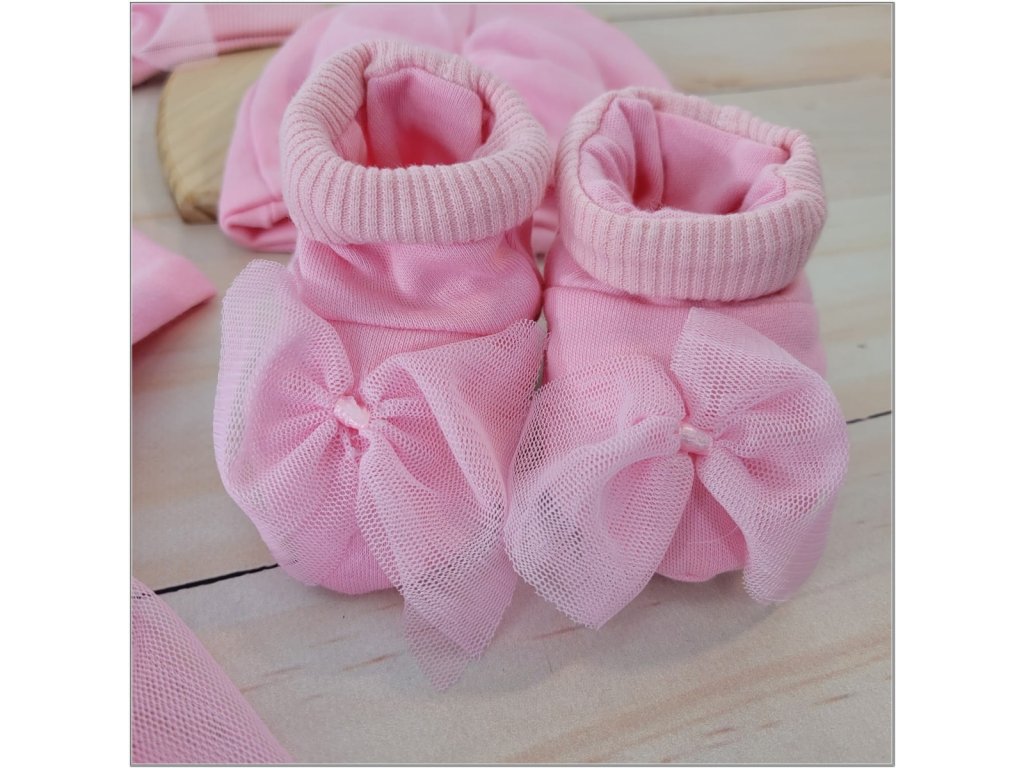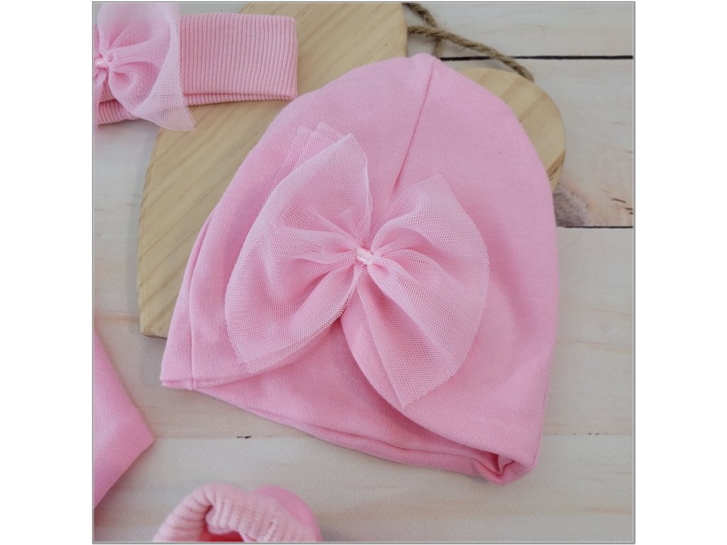 Z&Z 5-dílná soupravička sukničkobody, punčochy, čepička, čelenka, botičky - růžová