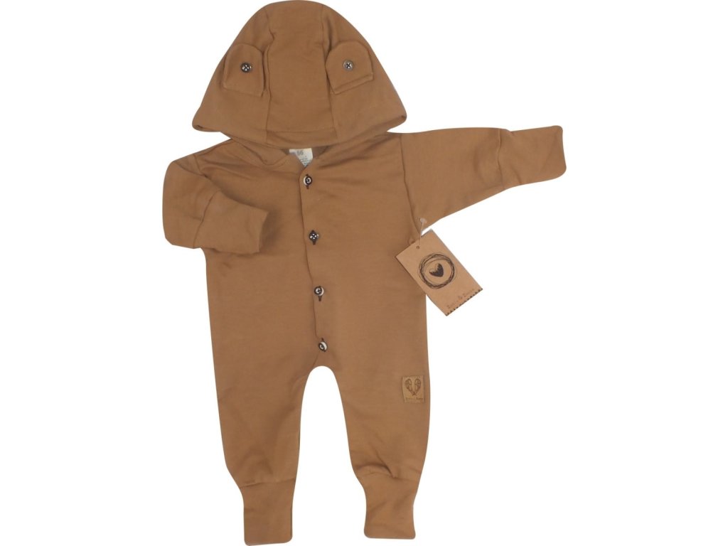 Z&Z Dětský teplákový overálek s knoflíčky a kapucí, hnedý
