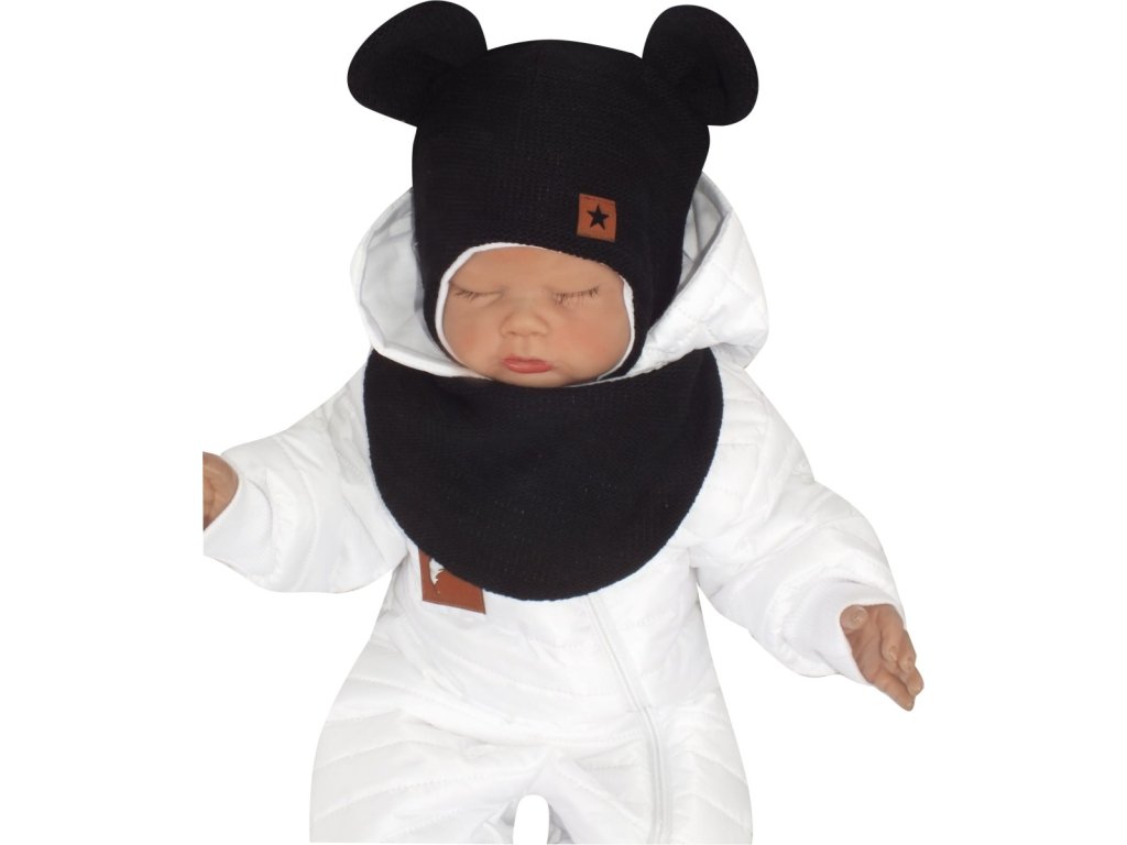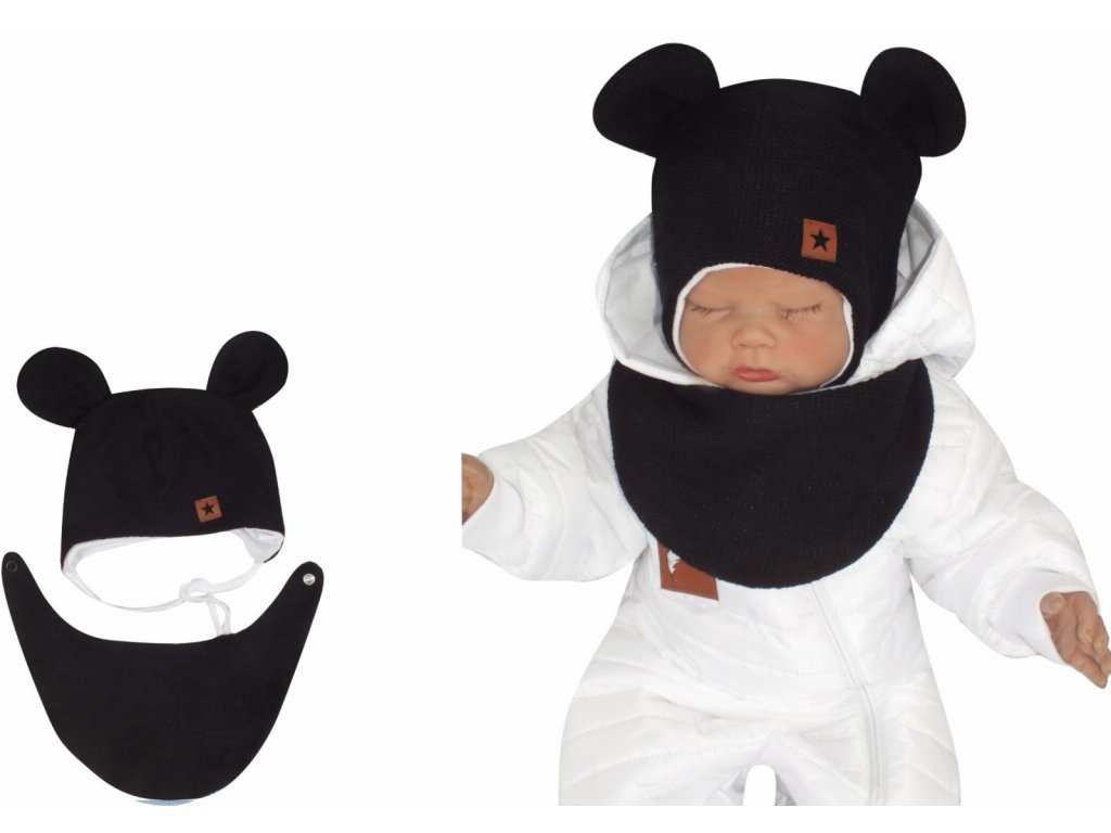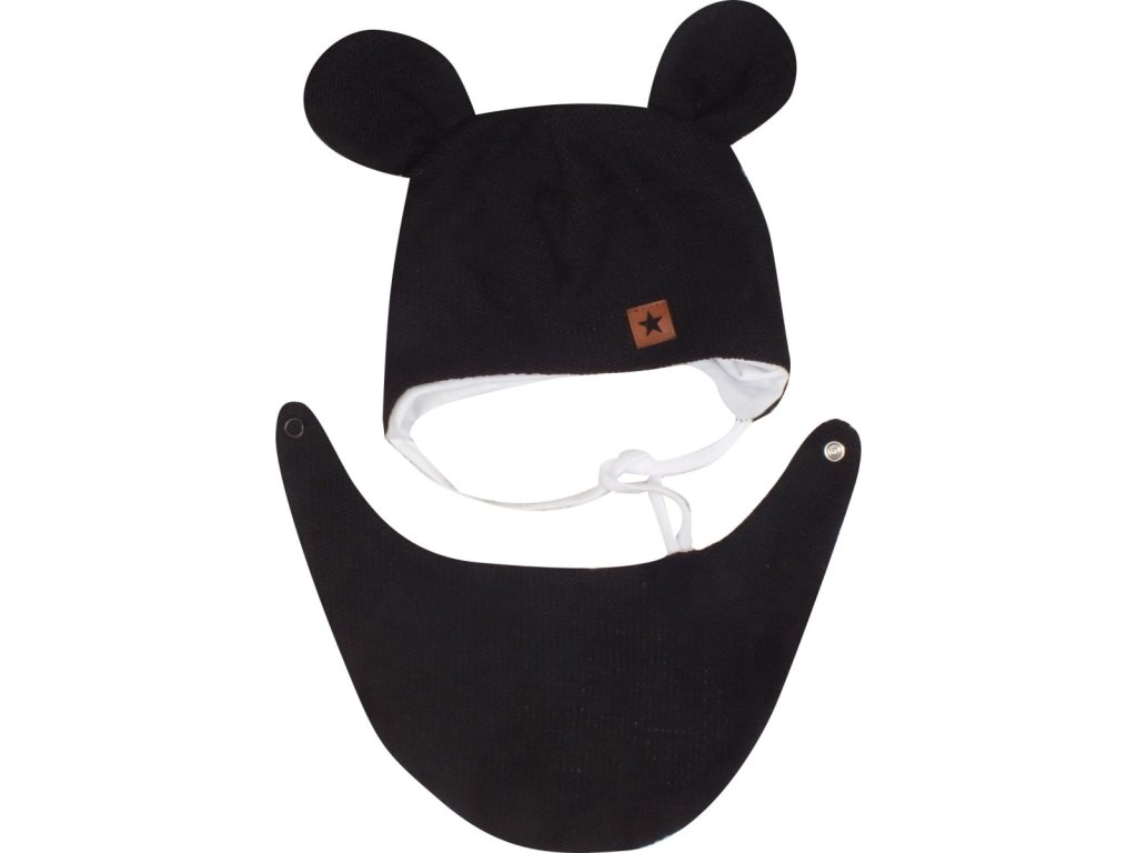 Z&Z Dvouvrstvá pletená čepice na zavazování s šátkem 2v1, Méďa - černá