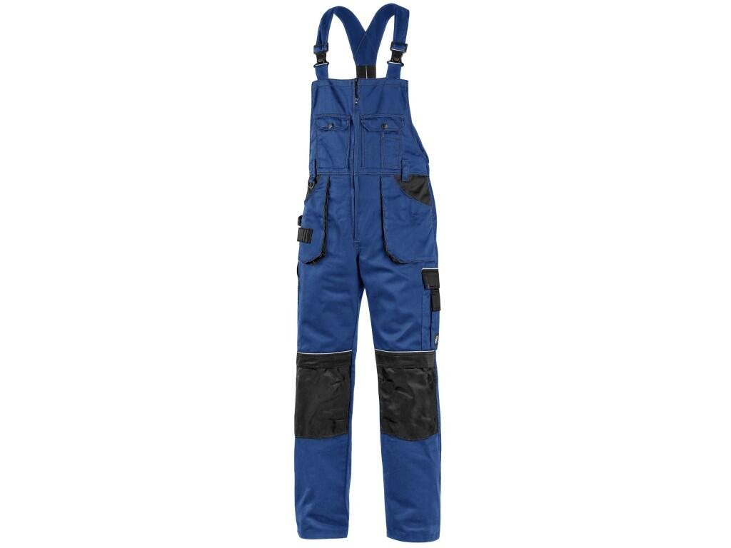 Pánské montérkové kalhoty s náprsenkou, náprsní kapsy s klopami, pas s poutky na opasek, vzadu do gumy, přední kapsy s poutky na nářadí, multifunkční kapsy na obou stranách, kolena zesílena 600D polyesterem s možností vložení kolenních výztuh, dvě zadní kapsy, jedna na suchý zip, šle s gumou vzadu, reflexní doplňky. Doporučené použití: stavebnictví, strojírenství, lehký průmysl, automobilový průmysl, logistika, skladová manipulace, spedice, autoservisy, údržba, montáže, zemědělství, zahrada, hobby.