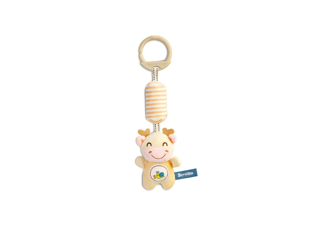 Závěsná hračka s klipem a zvonečkem Sensillo, Kravička, smetanová/růžová