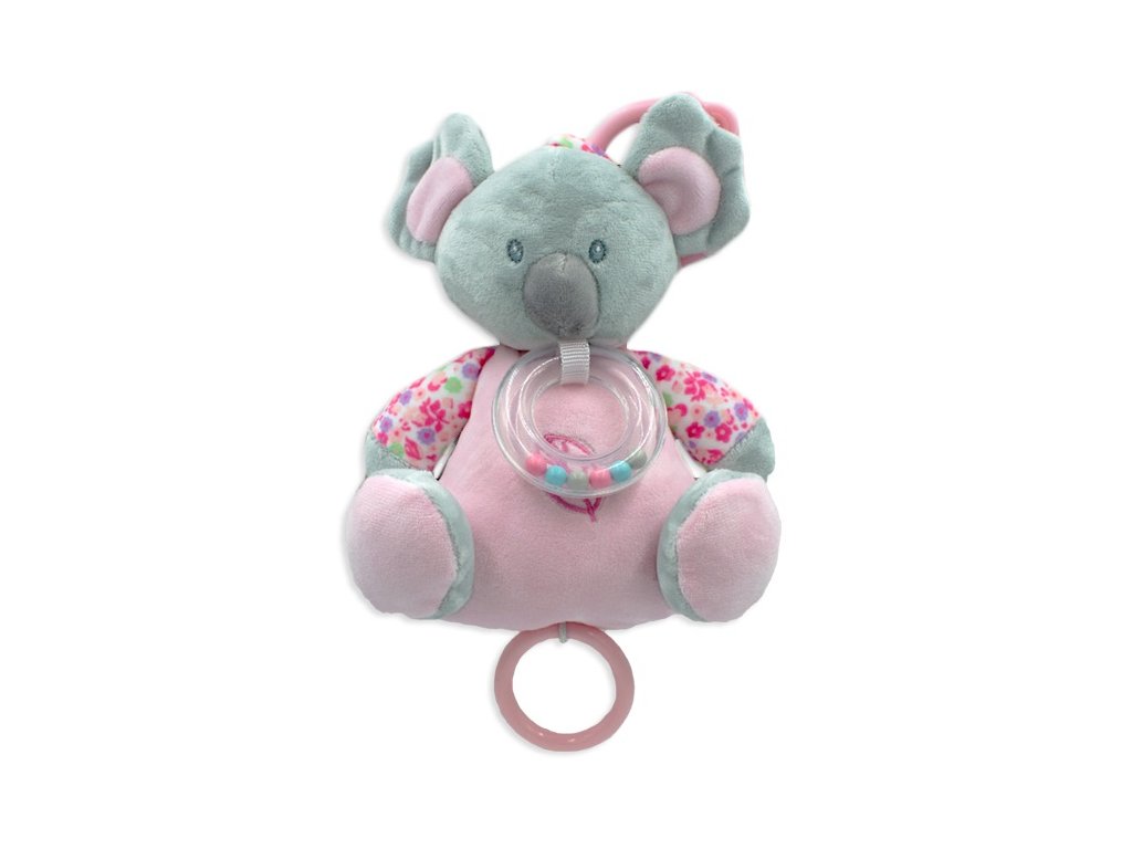 Závěsná plyšová hračka s chrastítkem Koala 18 cm - šedá/růžová