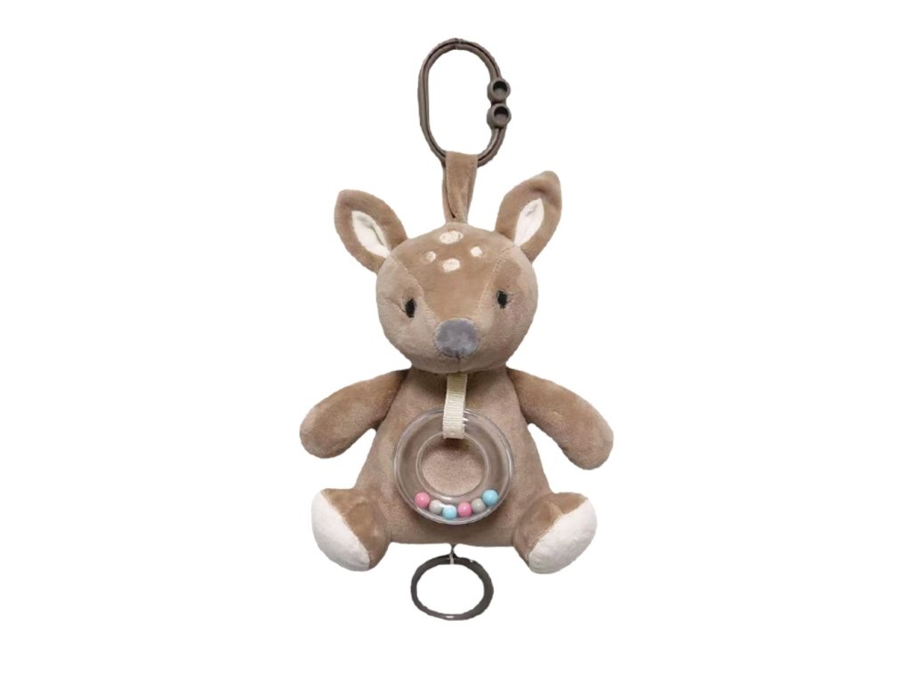 Závěsná plyšová hračka s melodií a chrastítkem Srnka, 18 cm - béžová