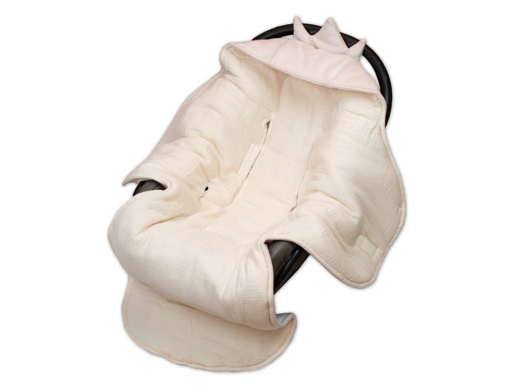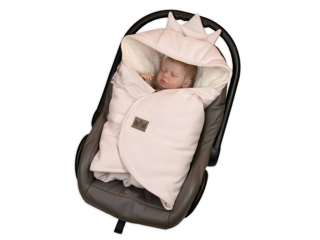 Zavinovací deka s kapucí. Potah se hodí na 3 a 5-ti bodové pásy, má dva dlouhé otvory, takže jej můžete namontovat do jakékoli autosedačky. Univerzální velikost vám umožní používat tento produkt od prvního dne života do cca 12 měsíců. Měkká, neuvěřitelně jemná zavinovačka vyrobená z vysoce kvalitní 100% mušelínové bavlny Double Gauze v kombinaci s mimořádně příjemnou na dotek a snadno čistitelnou pleteninou Suede Diver, uvnitř vyplněna antialergickou silikonovou netkanou textilií. Potah má všitý suchý zip pro pohodlné nastavení. Vyrobeno z certifikovaných materiálů OEKO-TEX Standard 100. Ideální pro děti 0 - 12 měsíců. Rozměry: délka - cca 100 x 115 cm. Materiál:100% bavlna.Doplňkové parametry