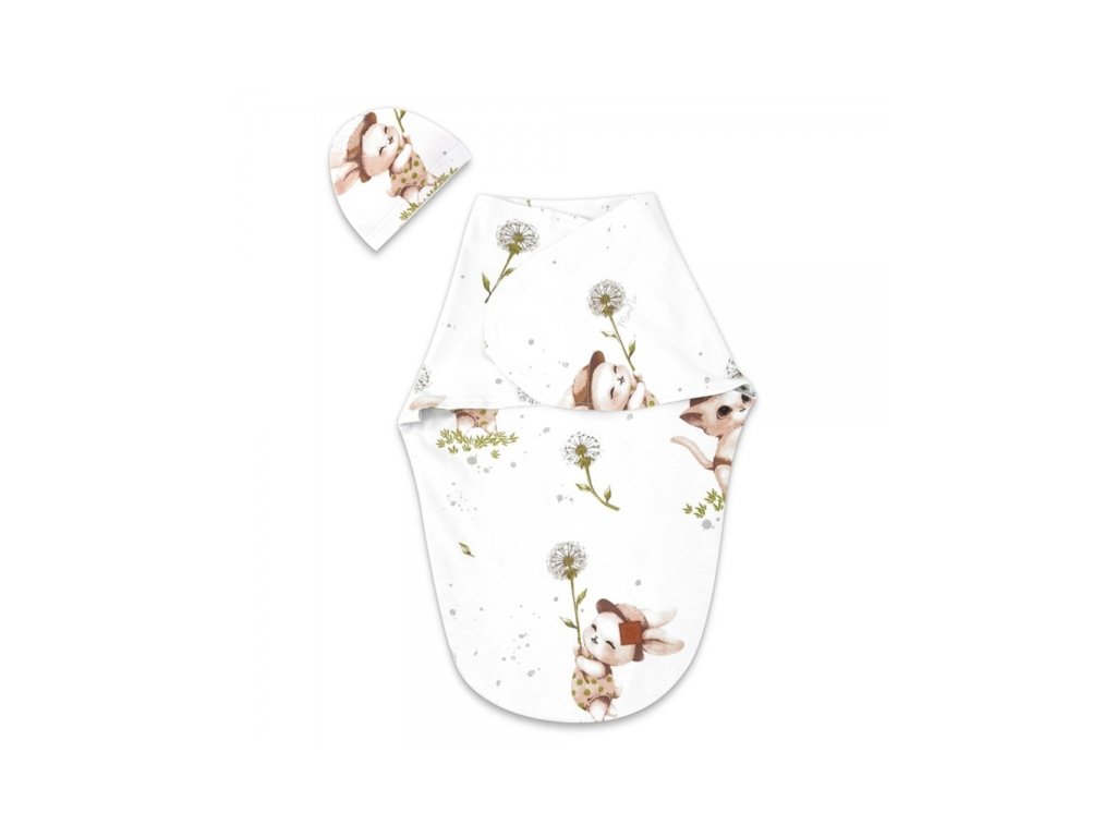 Zavinovací vak, zavinovačka + čepička, LUX SOFT, bavlna, Kocourek a pampeliška - bílá