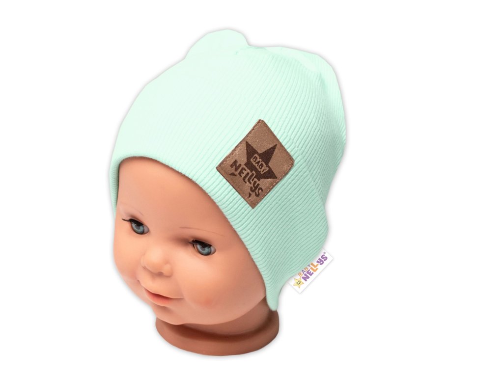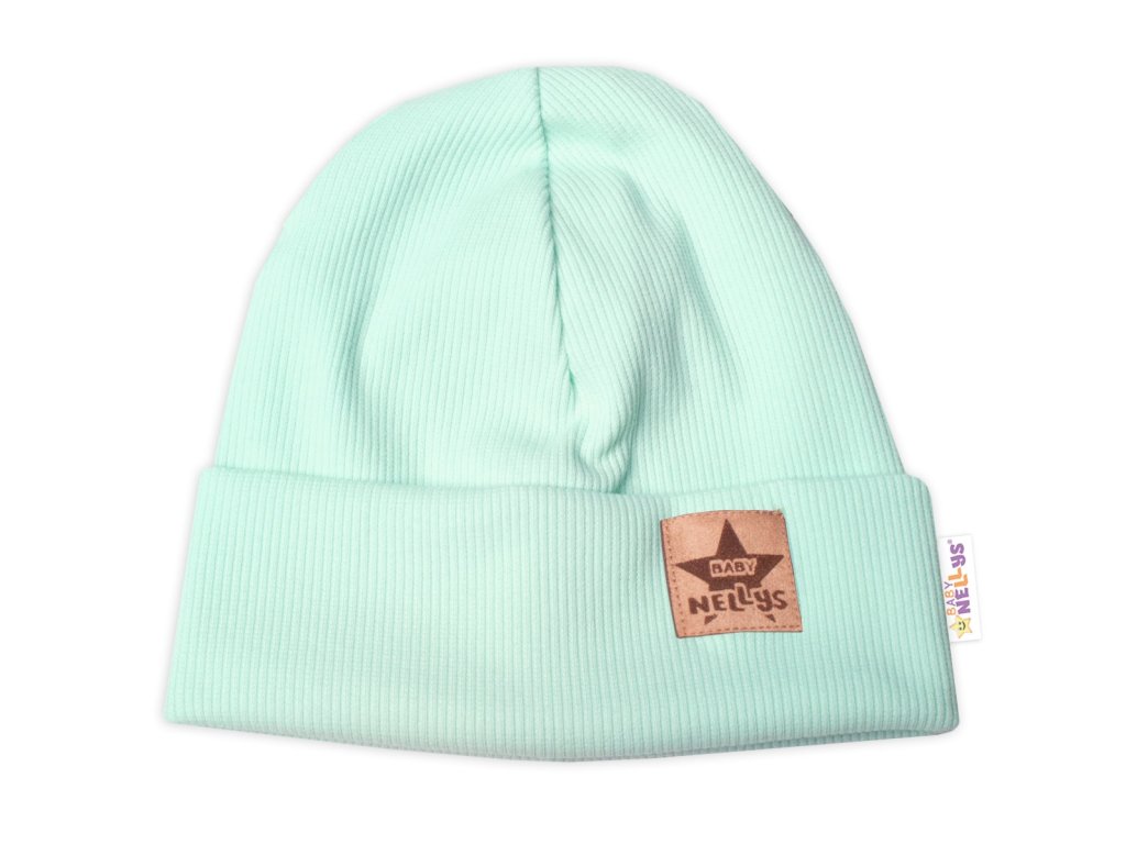 Žebrovaná dvouvrstvá čepice s lemem - mátová, Baby Nellys
