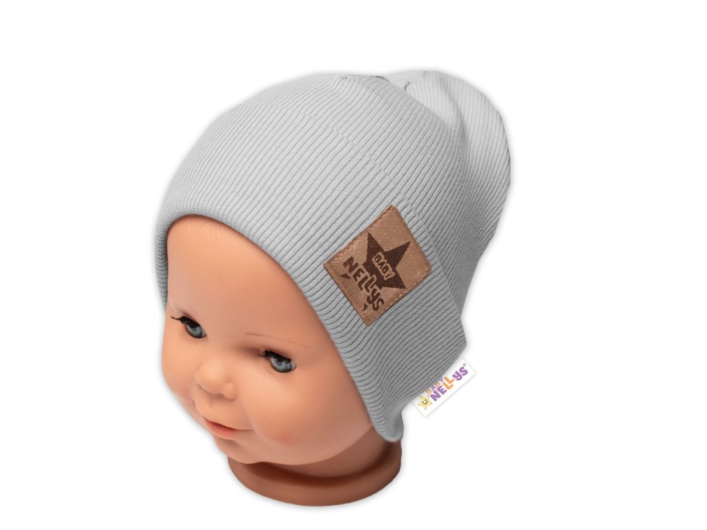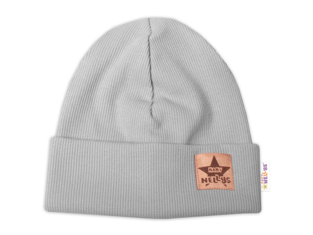Žebrovaná dvouvrstvá čepice s lemem - šedá, Baby Nellys