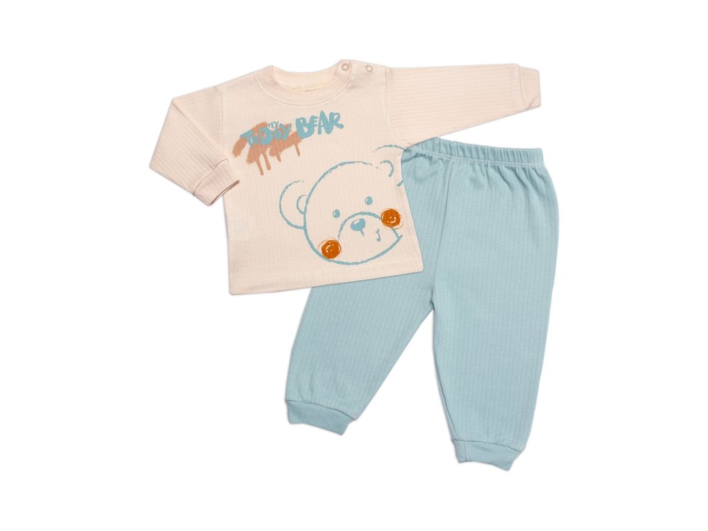 Žebrovaná souprava, My Teddy Bear 2D, bavlna, ecru/mátová