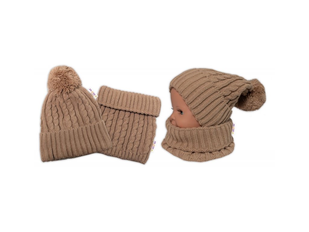 Zimní čepice s bambulí + komínek - béžová, vel. 48-52cm