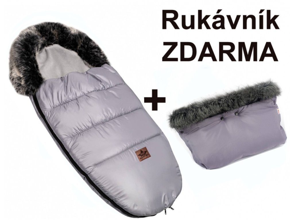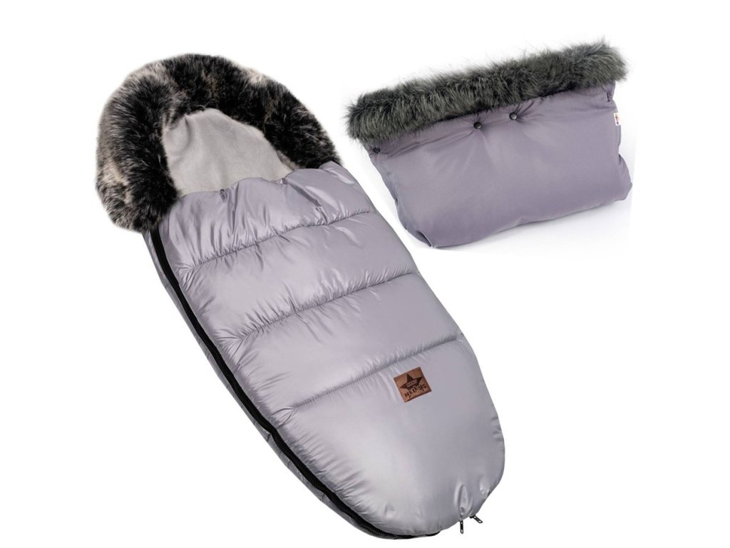 Zimní fusak s kožešinou + rukávník zdarma, Baby Nellys, 50 x 100cm, šedý