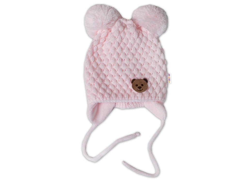 Zimní pletená čepice Teddy Bear na zavazování, růžová, Baby Nellys