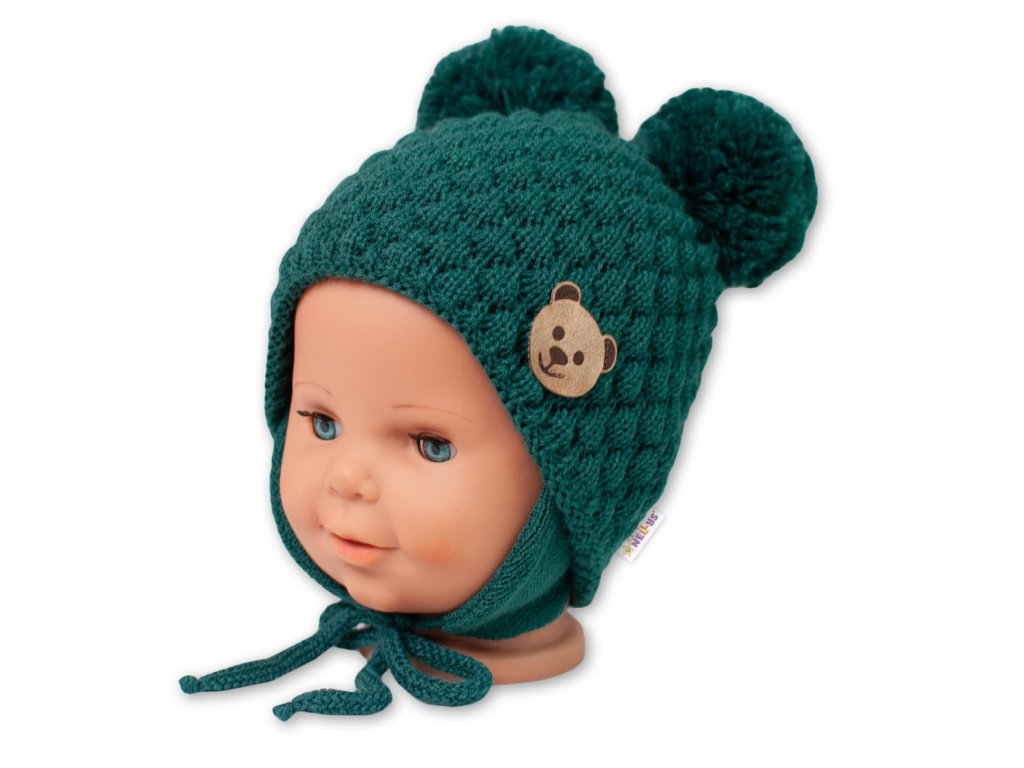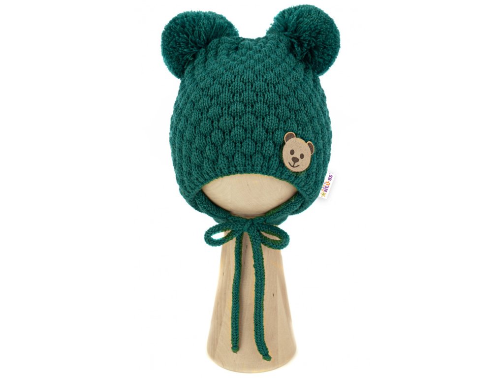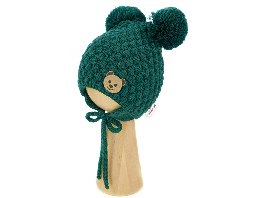 Zimní pletená čepice Teddy Bear na zavazování, zelená, Baby Nellys
